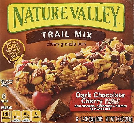 Several studies have confirmed that GMOs have links to issues related to allergies and cancer. Break into Our Bars. Nature Valley Chewy Trail Mix Granola Bar Dark Chocolate Cherry 12 Bars 912 2 98 020Ounce.