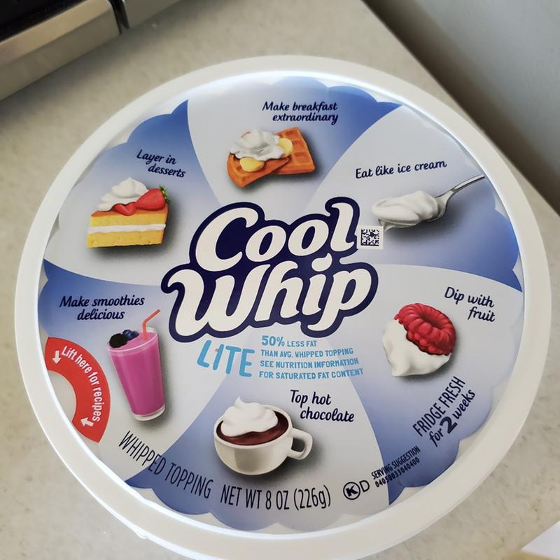 I think that the Cool Whip brand is better tasting than the generics. 20 2000 cal left. Cool Whip Lite Whipped Topping.