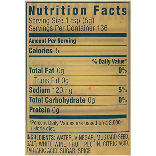 This specific food has the same amount of sodium as foods like most soups sliced deli meat and frozen pieces with 14400 milligrams per 600 calories which is a inordinate amount. Get nutrition information for Grey Poupon items and over 200000 other foods including over 3000 brands. There are 5 calories in 1 teaspoon 02 oz of Grey Poupon Deli Mustard.